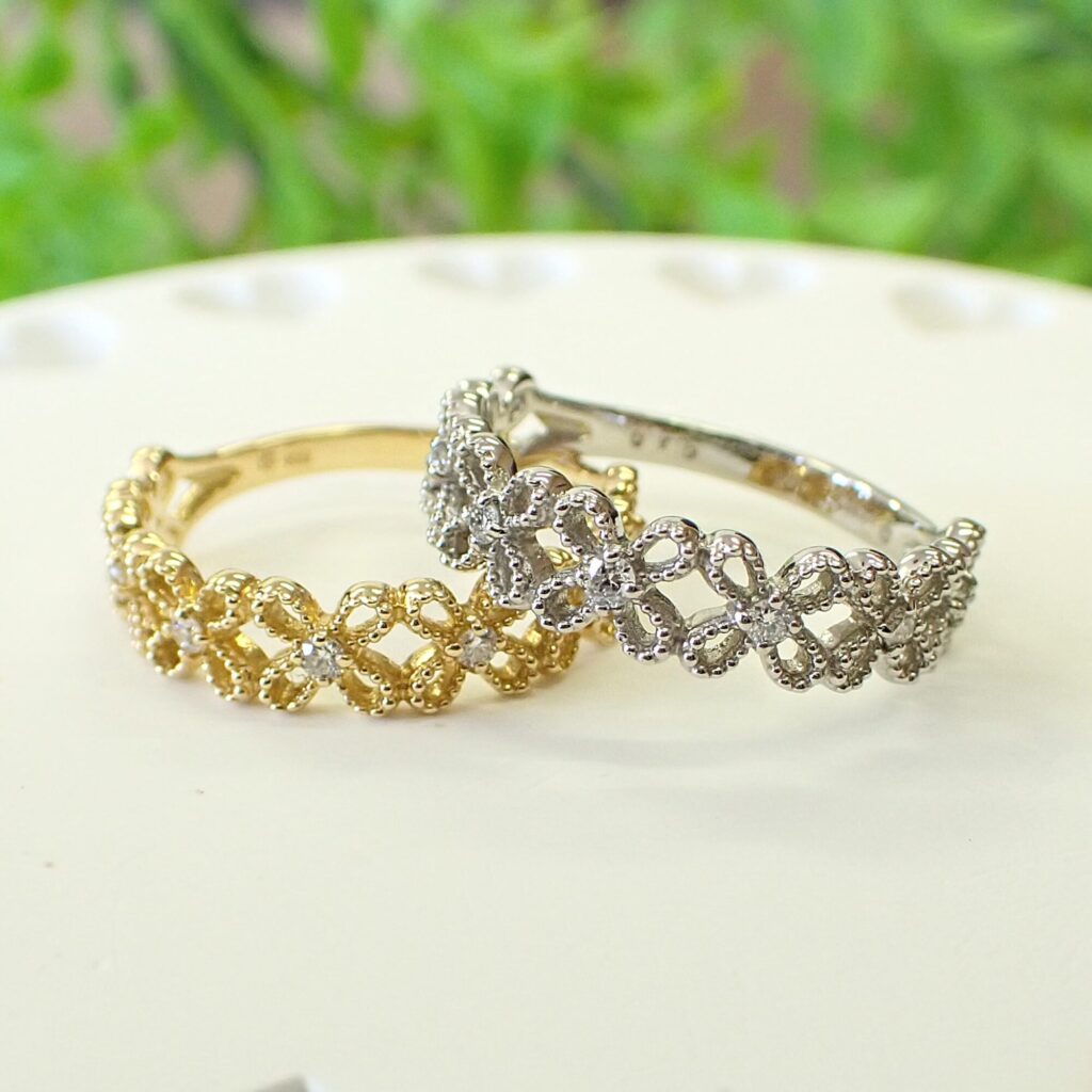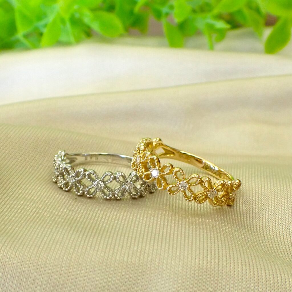 ミル打ち模様とダイヤが華やかさを増しますね✨