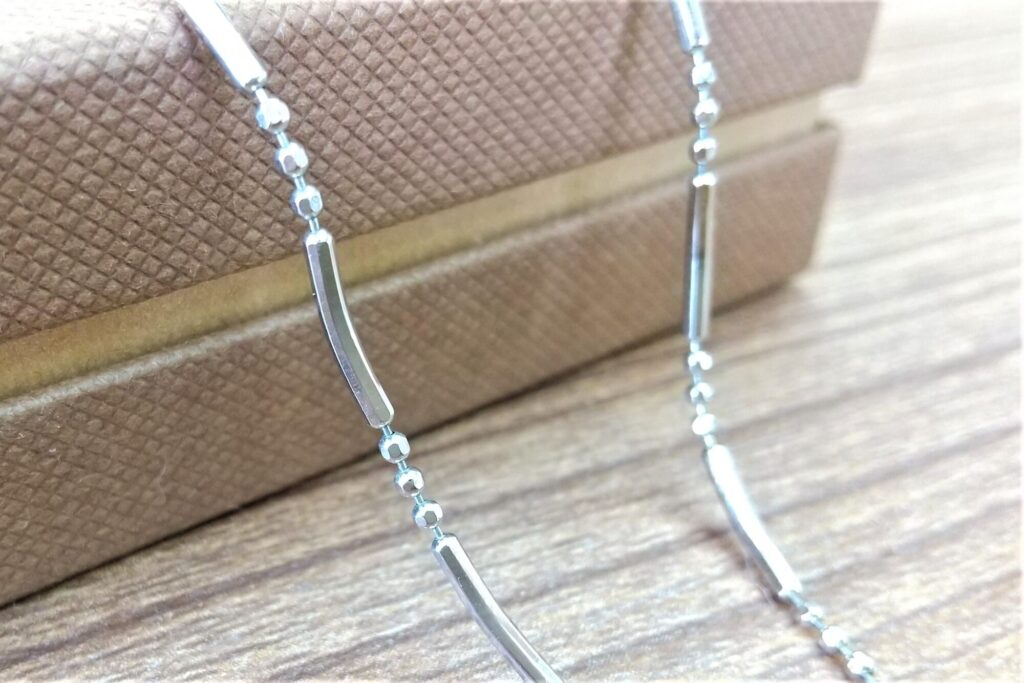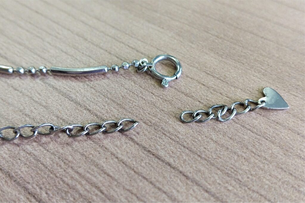 本日は長年お付き合い頂いております、大分市N様からのネックレス修理のご依頼です。写真でわかるように長さ調整部分が切れています。おそらく切れてしまったパーツはそのまま紛失したご様子です。今回は残った部分を開いて再び閉じる作業になります。修理完成はこちら。