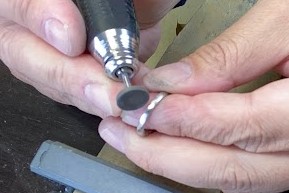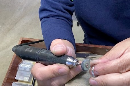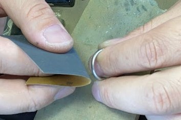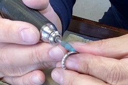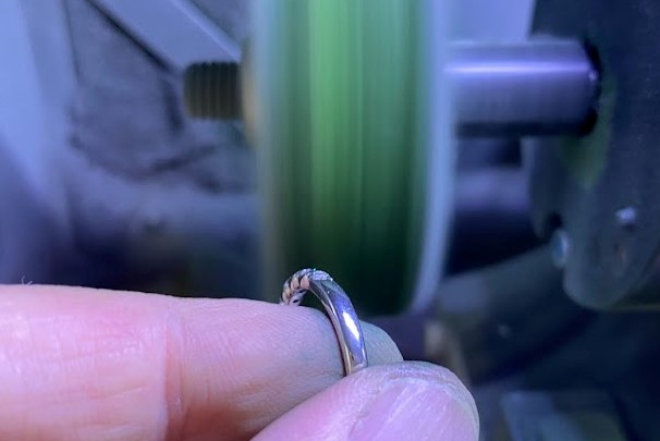 小さなバフという柔らかい先端工具で最終仕上げです。リングの内側も丁寧に表面と同じくらい仕上げます。