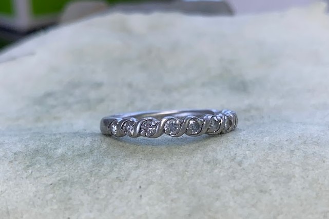 完成品です。プラチナのツヤと輝きが復活していますね。細かなダイヤの爪にも輝きが復活しています。