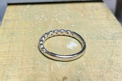 ここまでの作業工程になると通常のクリーニング代金に+料金を頂きますが、実はここまでのクリーニングをしなくても通常の簡単クリーニングで綺麗になる指輪がほとんどです。今回の指輪も簡単クリーニング(3,000円税込)でも充分ピカピカになるはずです。気になる方はお気軽に電話やメールでお問合せ下さい。