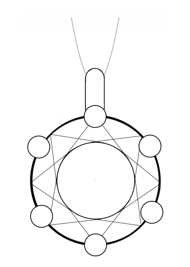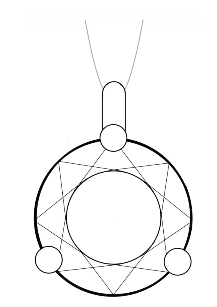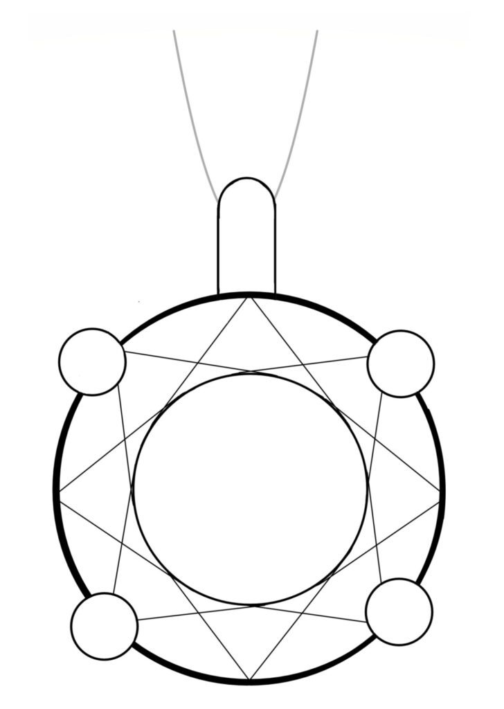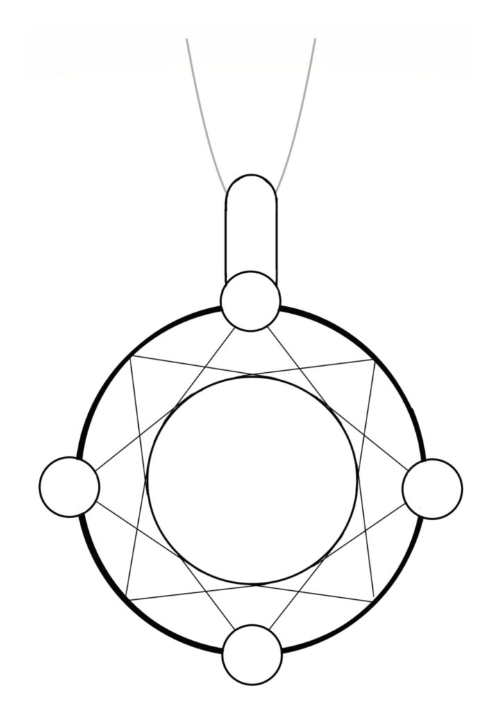 ◎4本爪チェーン直付・10時と2時の位置にチェーン直付けでネックレスに固定。短めのチェーンがオススメ。↓