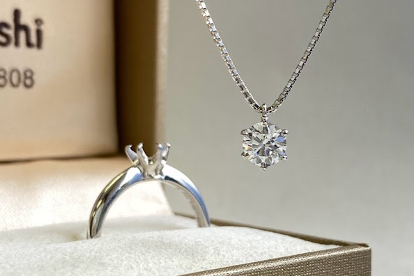 落着いた高級感のある白金色は、まさにジュエリー。ダイヤモンドの透き通るような輝きにピッタリの素材です。