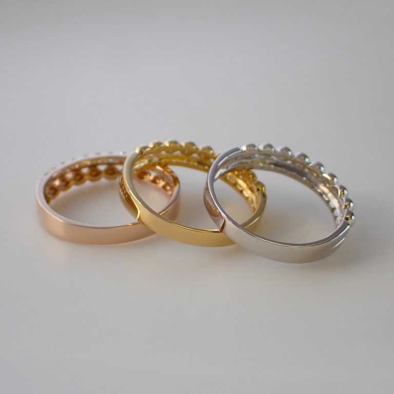 (左)K18ピンクゴールド(中)K18イエローゴールド(右)プラチナ