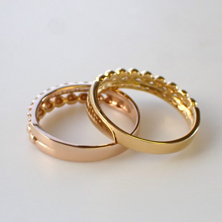 同じゴールドでもイエロー(右)とピンク(左)はイメージが違いますね。